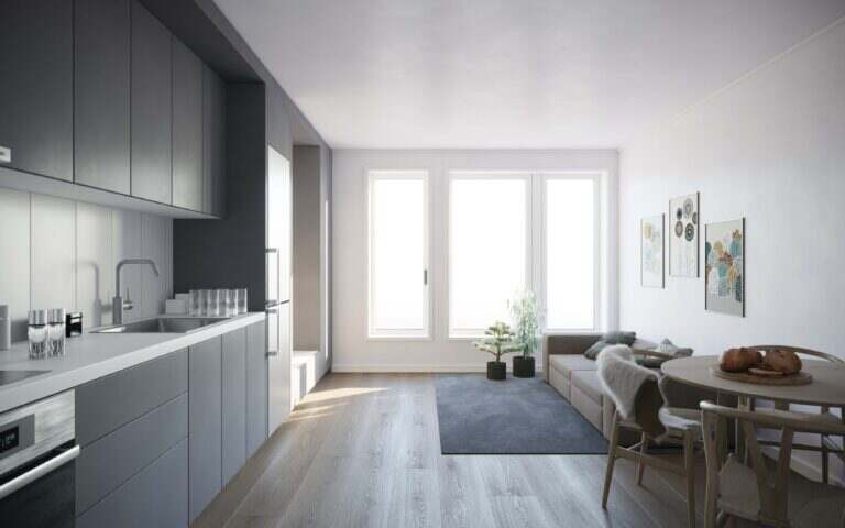 De 117 lägenheterna i Autogyron erbjuder moderna och funktionella bostäder, och här hittar du 1–3 rum och kök fördelat på 27–75 m². Lägenheterna har en ljus och luftig känsla. Flera lägenheter har balkong eller uteplats på markplan, och parkeringsplats finns att hyra i intilliggande garage.