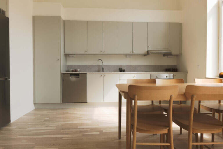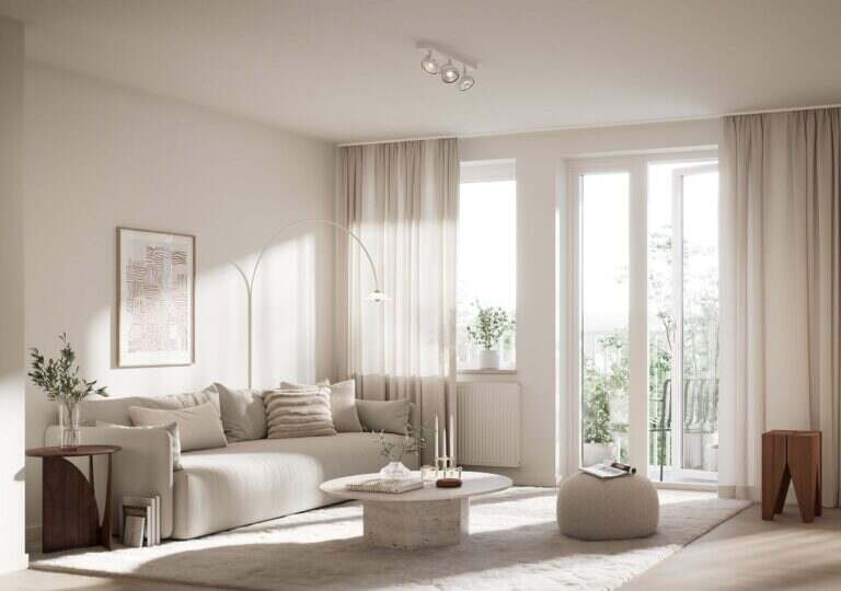 Här i kvarteret hittar du Svanenmärkta hyresbostäder i varierande storlekar från 1 till 4 rum och kök. Oavsett om du vill bo själv, är sambo eller på väg att bilda familj så kommer du att hitta ett boende som passar just dig. Välplanerade och öppna planlösningar med gott om ljusinsläpp. Färger, material och detaljer är utvalda för att göra det lätt att skapa en egen och personlig känsla. Köken som går i en grön eller beige kulör kommer från Vedum och är utrustade med diskmaskin, ugn och induktionshäll. Alla vitvaror kommer i rostfritt utförande.