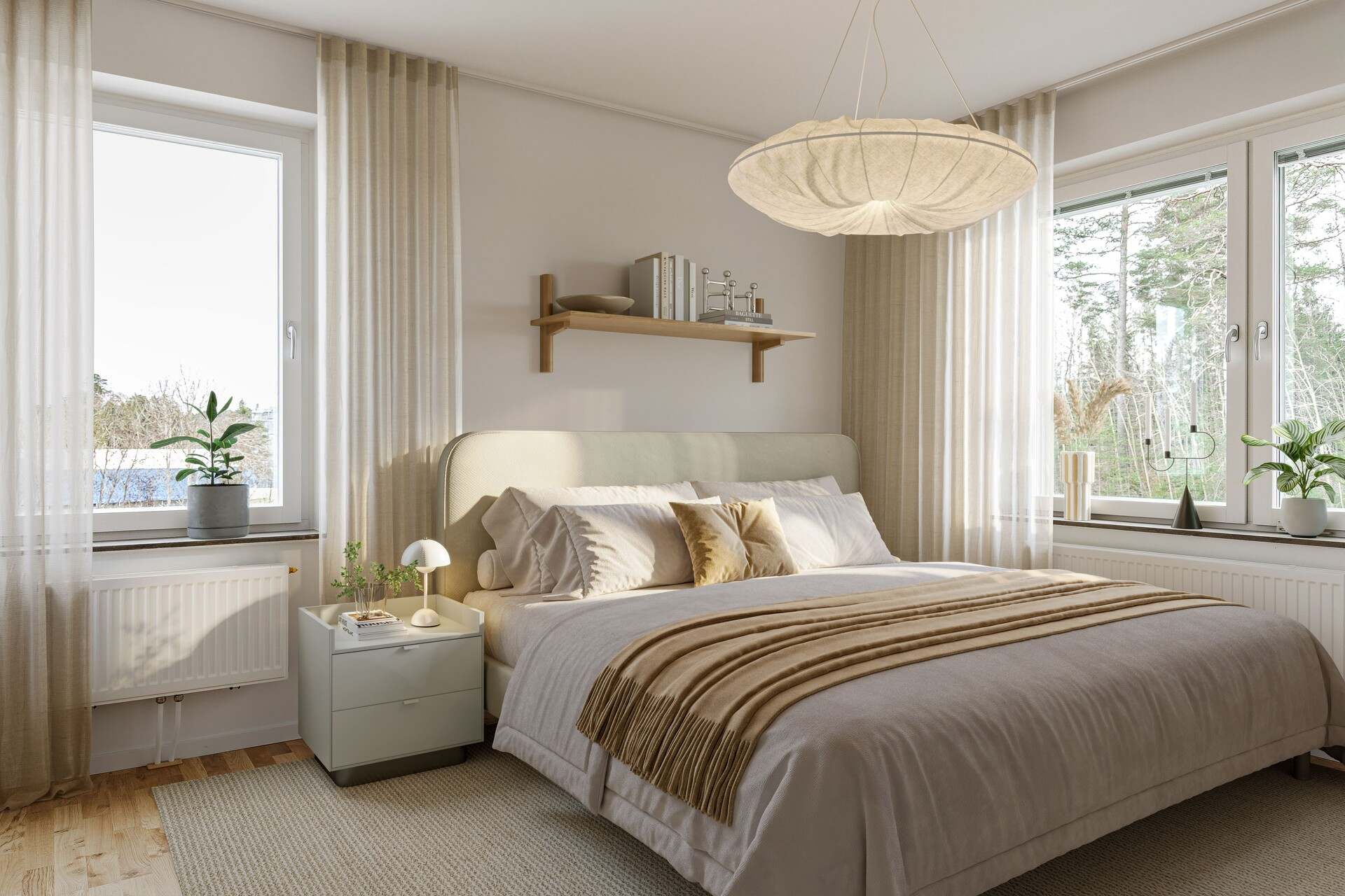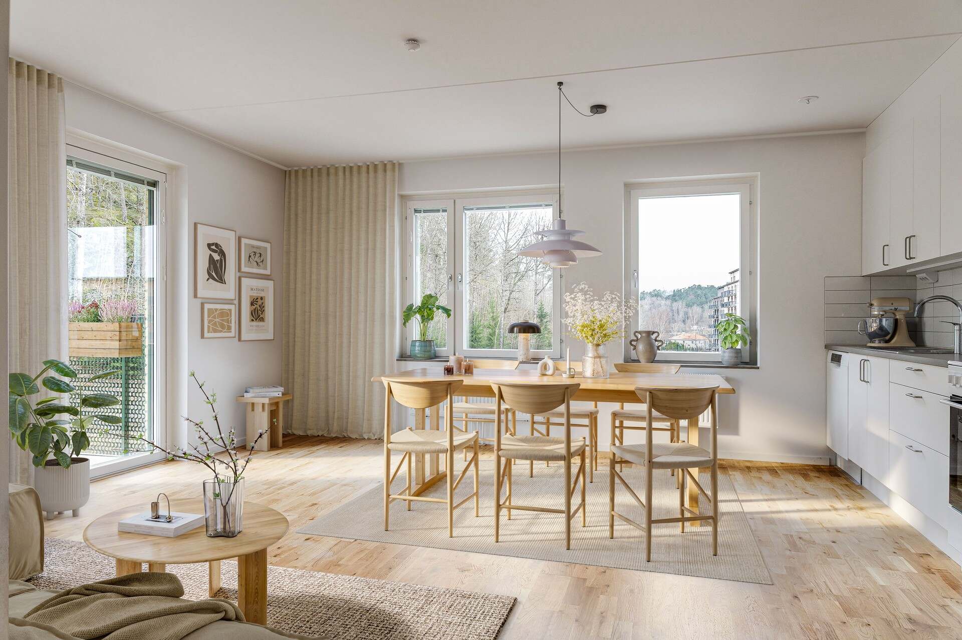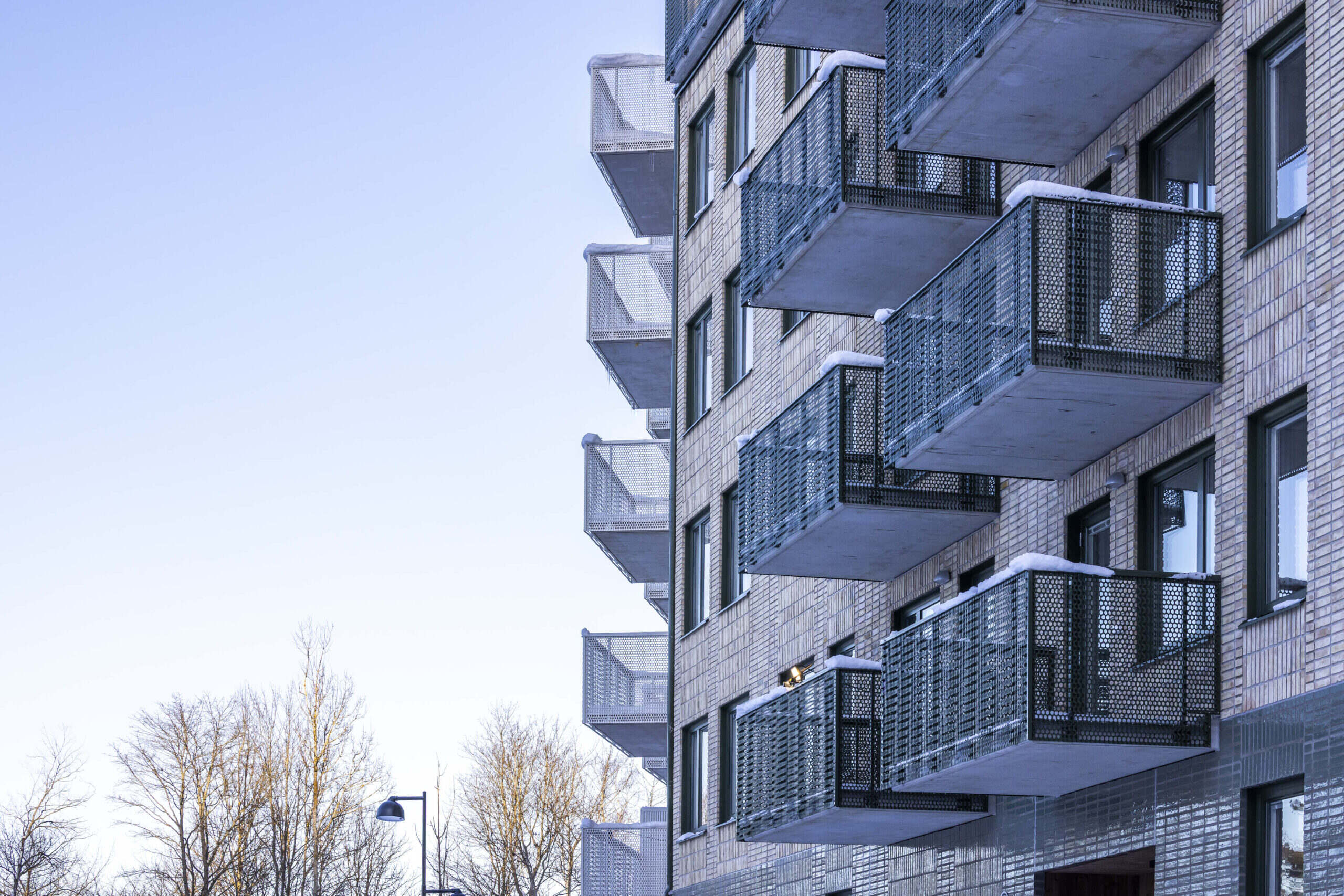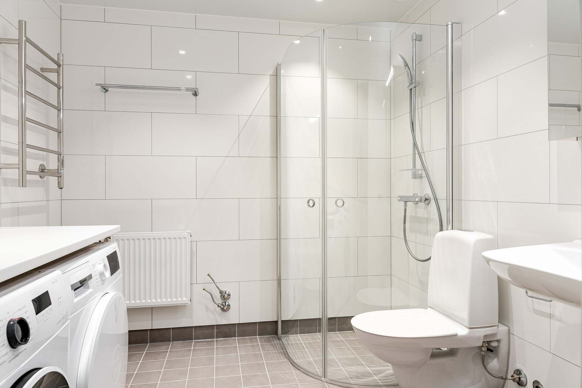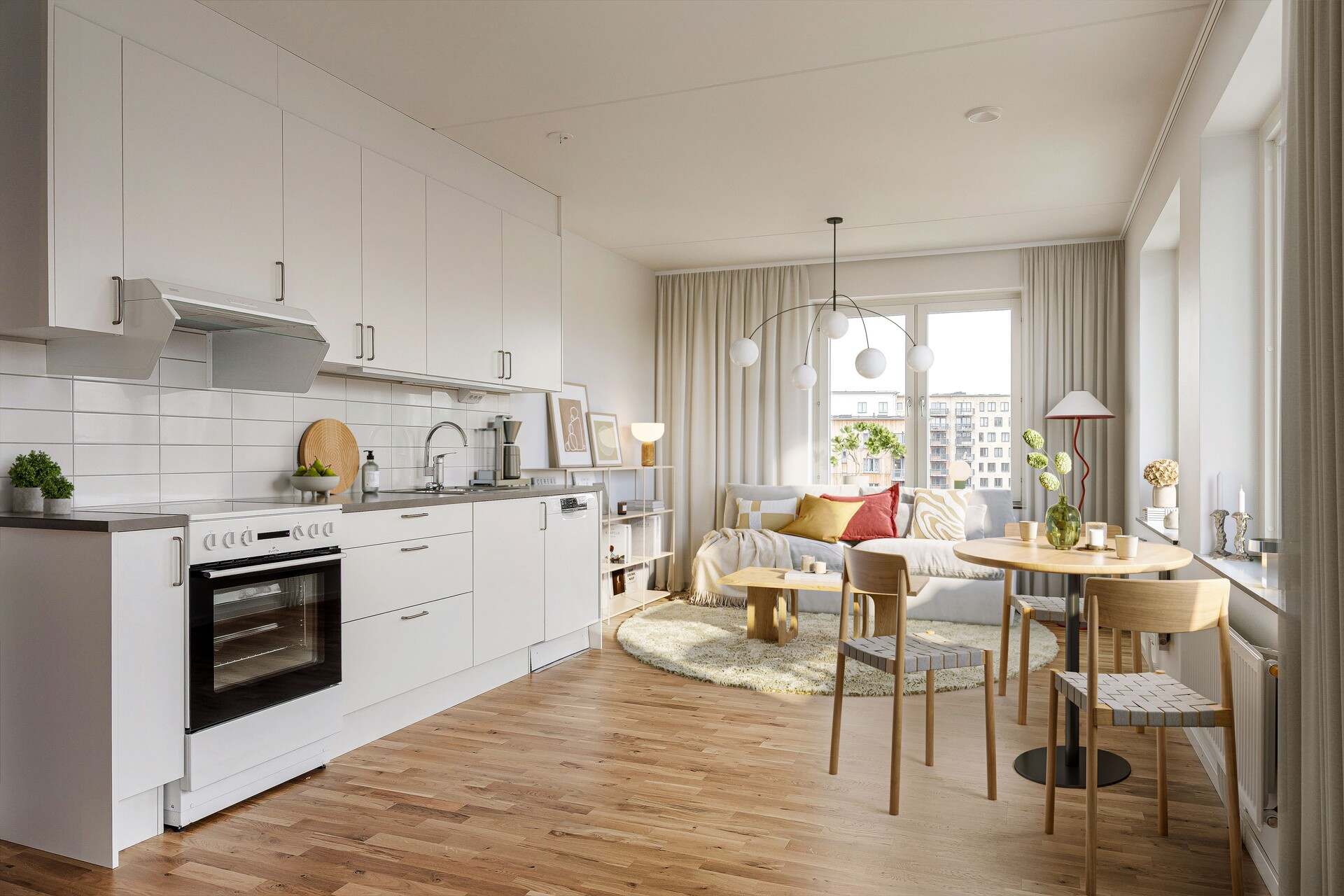 Här hittar du moderna och yteffektiva hyresrätter. I samtliga lägenheter hittar du välutrustade kök med diskmaskin och moderna vitvaror, köksluckor och lådor är vitlackerade i slätt utförande. Badrummen har vitt kakel, klinker i grått samt duschväggar i glas. I badrummen hittar du även handdukstork och antingen tvättmaskin och torktumlare, eller en kombinerad tvätt- och torktumlare.